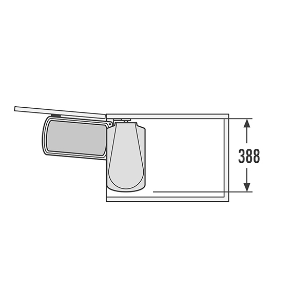 Тип монтажа ведро монтируется на левую или правую боковую стенку шкафа. Поводок открывания синхронно с дверью крепится на внутреннюю поверхность фасада.