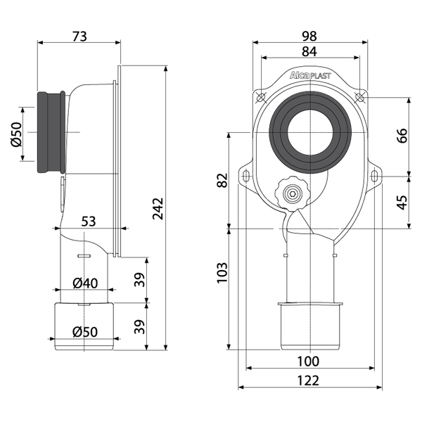 Сифон для писсуара ALCAPLAST вертикальный DN40 и DN50 A45C: