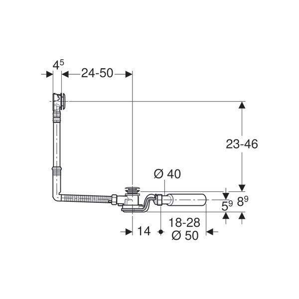 Слив перелив для ванны GEBERIT PushControl 150.756.21.1