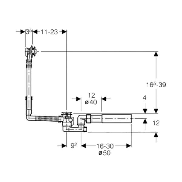 Высота гофротрубы до слива: 16,5-39 см.