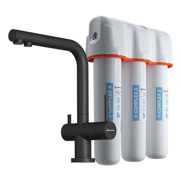 Комплект смеситель для кухни OMOIKIRI Nagano P с фильтром Pure drop Lite-BL черный 4047.8028P