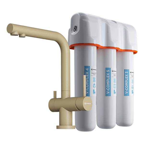 Комплект смеситель для кухни OMOIKIRI Nagano P с фильтром Pure drop Lite-CH шампань 4081.8028P