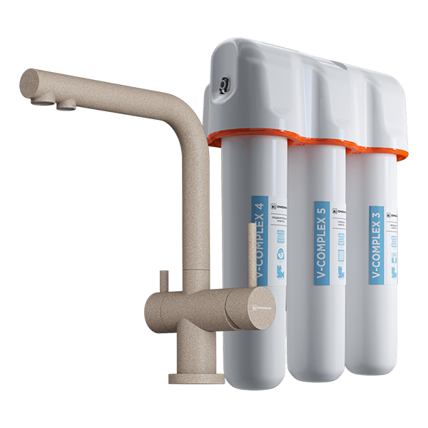 Комплект смеситель для кухни OMOIKIRI Nagano P с фильтром Pure drop Lite-SA бежевый 4055.8028P