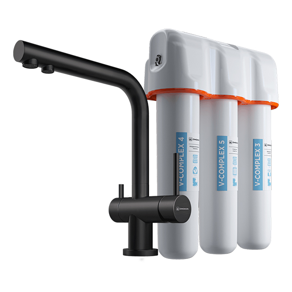 Комплект смеситель Nagano-GB латунь/графит + водоочиститель PURE DROP Lite.