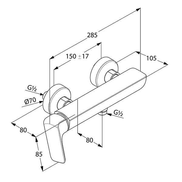 - Боковое управление - Настенный монтаж - Класс расхода воды А.