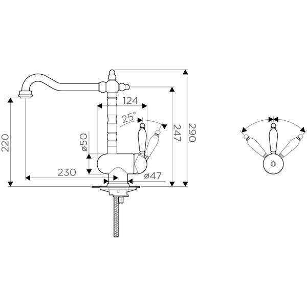 Классический дизайн и удобство использования, благодаря высокому изливу;