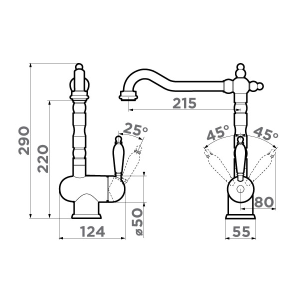 Классический дизайн и удобство использования, благодаря высокому изливу;