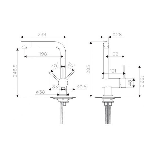 Смеситель для кухни OMOIKIRI Tanigawa-C 4994240 Картридж керамический D25 мм, аэратор — пластик, соединительные шланги гибкие, в оплетке из нержавеющей стали, набор креплений нержавеющая сталь, удобный высокий излив, "тонкий" современный дизайн, отверстие для установки ø35 мм
