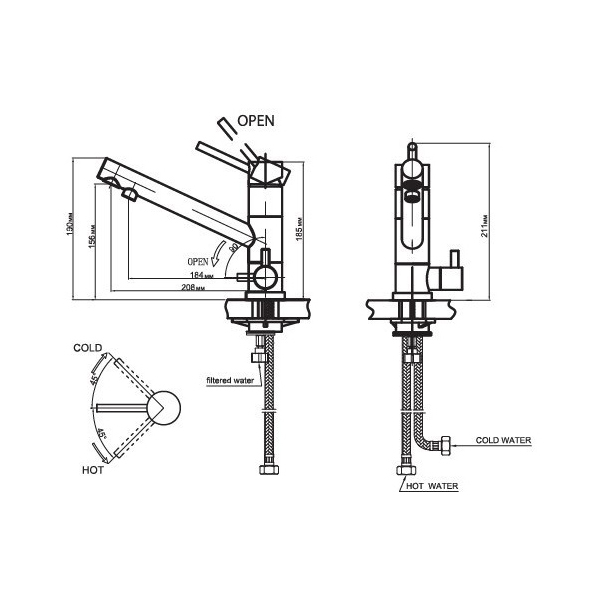 Смеситель для кухни OMOIKIRI Tonami-C 4994012 Подключение фильтра для очистки воды, картридж керамический D35 мм, аэратор — пластик, соединительные шланги гибкие, в оплетке из нержавеющей стали, полный комплект соединений для подключения фильтров