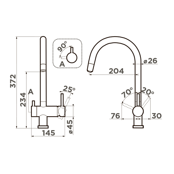 Смеситель для кухни OMOIKIRI Yamada-C хром глянцевый 4994224 Подключение фильтра для очистки воды, картридж керамический D35 мм, аэратор — пластик, соединительные шланги гибкие, в оплетке из нержавеющей стали, полный комплект соединений для подключения фильтров всех производителей, набор креплений металл, современный дизайн, отверстие для установки ø35 мм