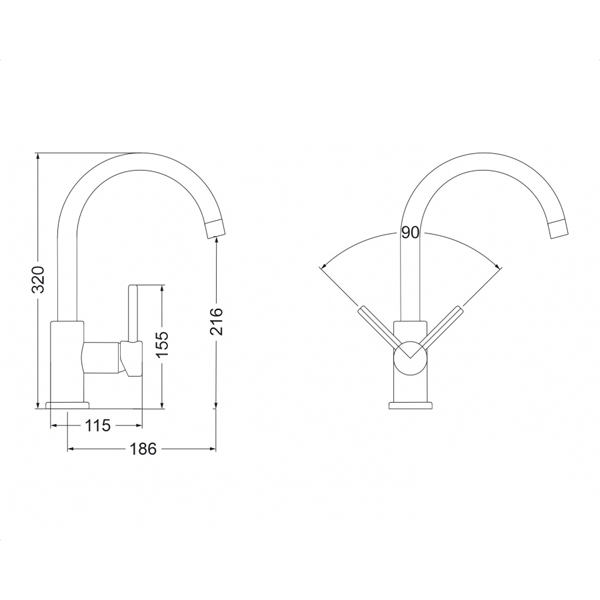 Высота смесителя 320 мм