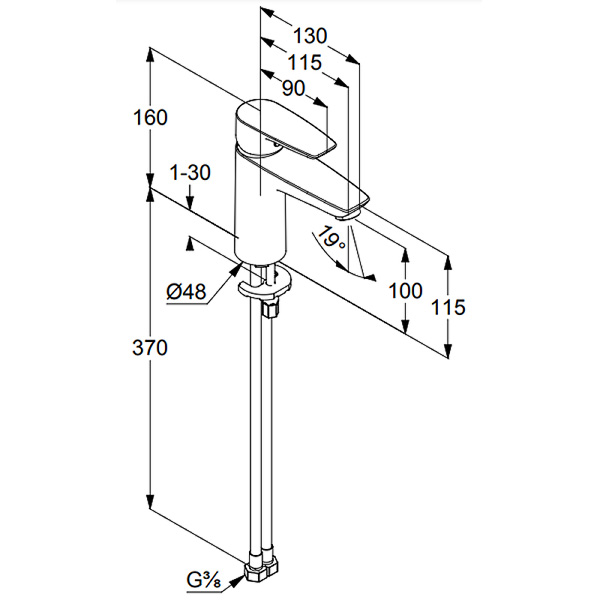 Смеситель для раковины KLUDI Pure&Solid без донного клапана хром глянцевый 342920575