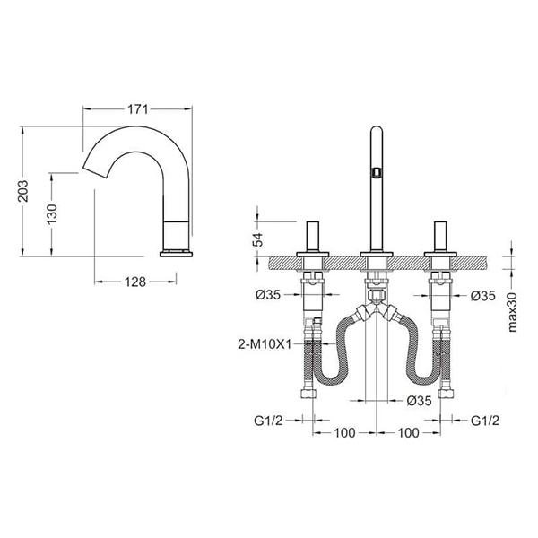 Смеситель для раковины на три отверстия ZEEGRES Siena 20008001: