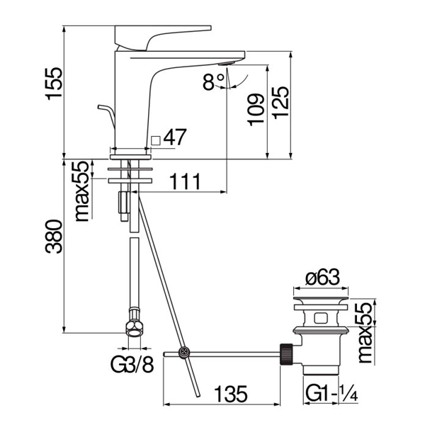 Смеситель для раковины NOBILI Seven с донным клапаном черный матовый SE124118/1BM