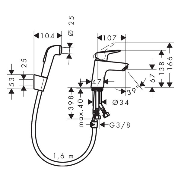 Смеситель для раковины с гигиеническим душем HANSGROHE Logis 71290000