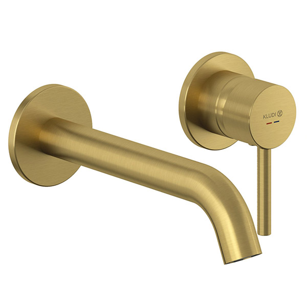Смеситель для раковины настенный KLUDI Bozz 230 мм с внутренней частью 38243 в комплекте золото брашированное 38245N076S