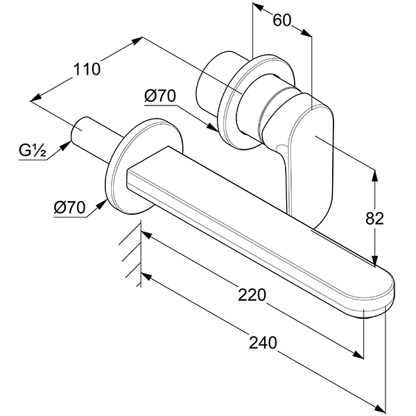Смеситель для раковины встраиваемый KLUDI Louva 220 мм хром глянцевый 242450575:
