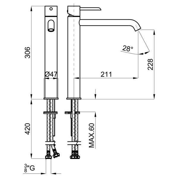 Смеситель для раковины высокий NOKEN Round хром 100208362