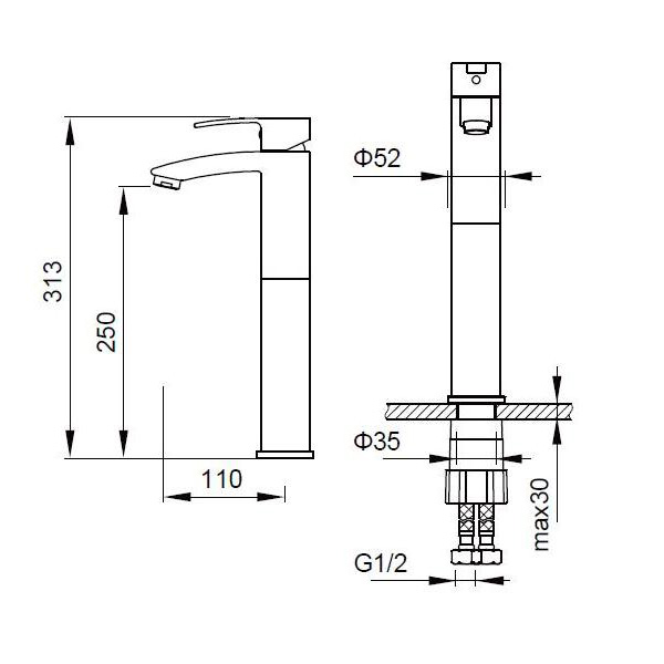 Смеситель высокий для раковины, однорычажный ZEEGRES Prog 70004001