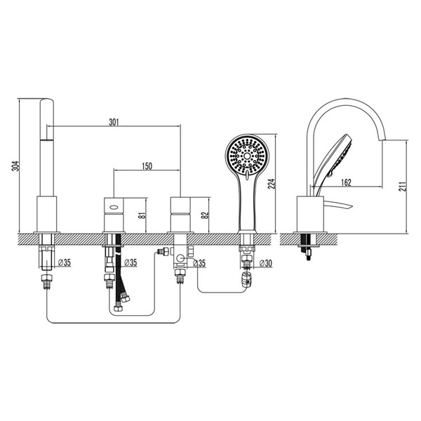 Смеситель на борт ванны на 4 отверстия LEMARK Atlantiss хром LM3241C