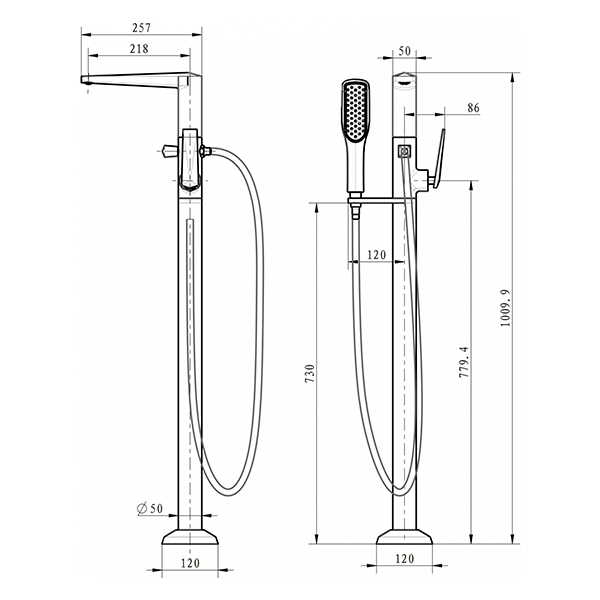 Смеситель для ванны напольный BOHEME Venturo черный/хром 379-B: