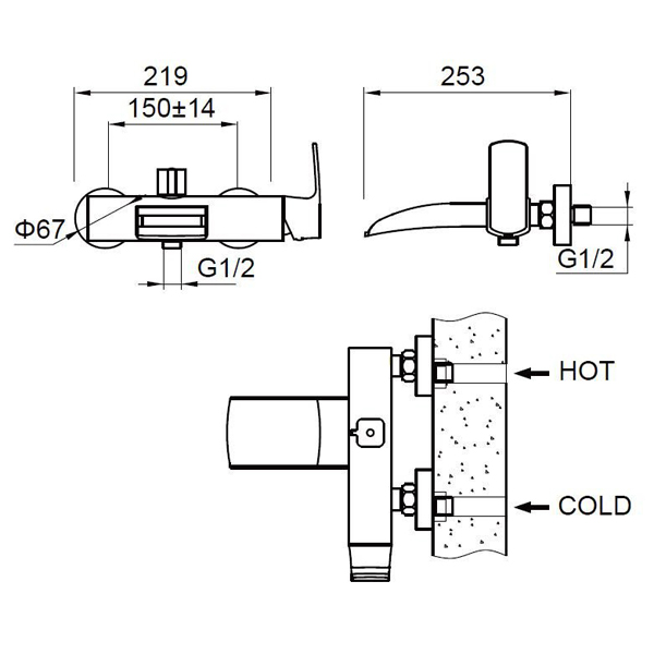 Смеситель для ванны/душа, однорычажный ZEEGRES Kon каскадный излив 72002001