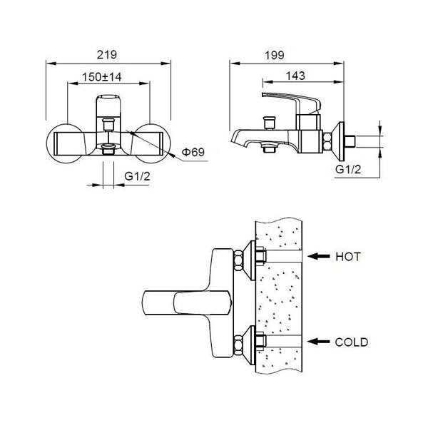 Смеситель для ванны/душа, однорычажный ZEEGRES Rill 47002001