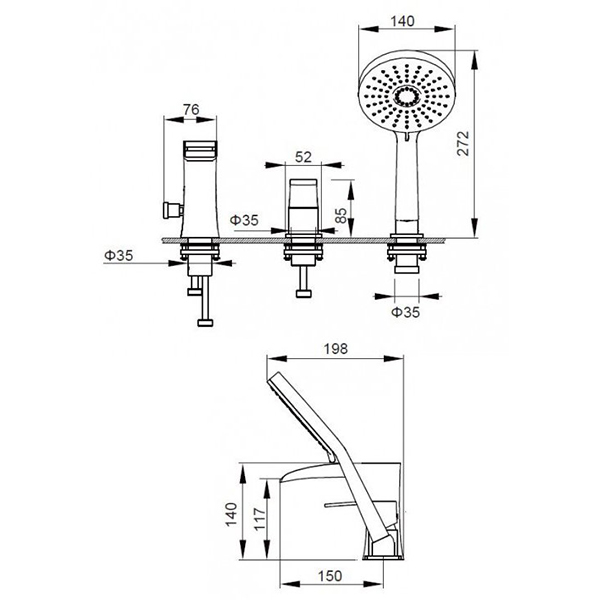 Смеситель на борт ванны 3 отверстия ZEEGRES Kon 72018001: