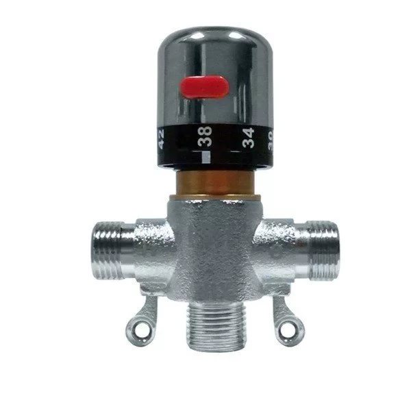 - Автоматически смешивает и поддерживает заданную температуру воды на выходе.