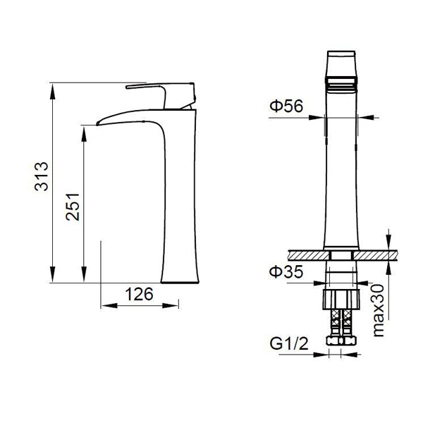 Высота смесителя 313 мм