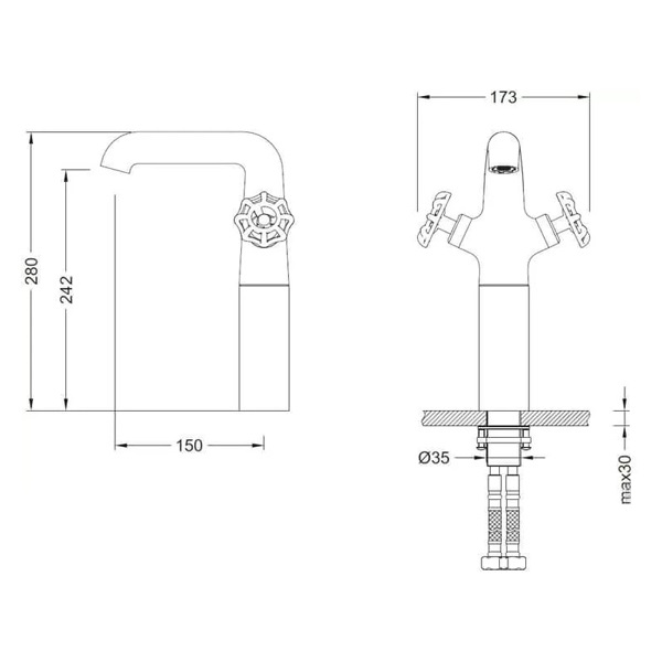 Смеситель высокий для раковины двухзахватный ZEEGRES Modena ручки красного, черного или белого цвета приобретаются дополнительно 19094001