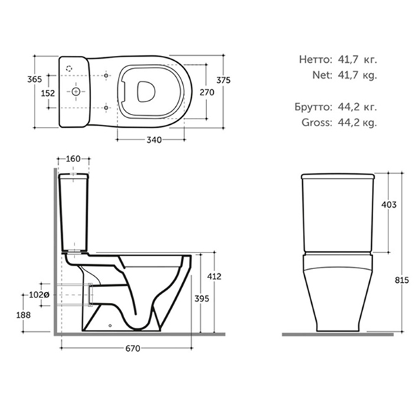 Унитаз-компакт безободковый KERAMIN Бари R SoftClose Slim 670х375х815 мм: