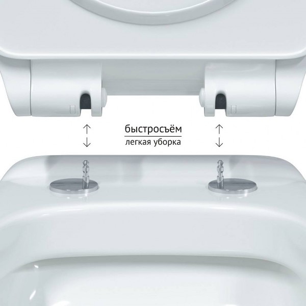 Безободковая система смыва, антибактериальное покрытие, экономия воды, открытое крепление