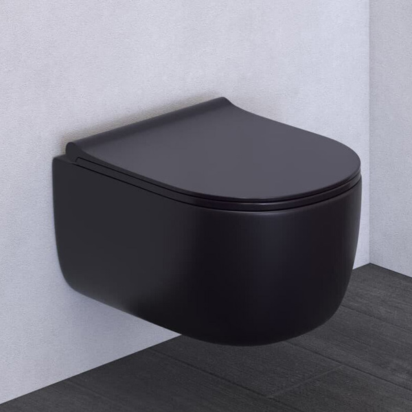 Унитаз подвесной безободковый BERGES Ego Black Rimless крышка сиденье быстросъемное с механизмом плавного закрывания SoftClose 490х370х325 мм черный матовый 082125