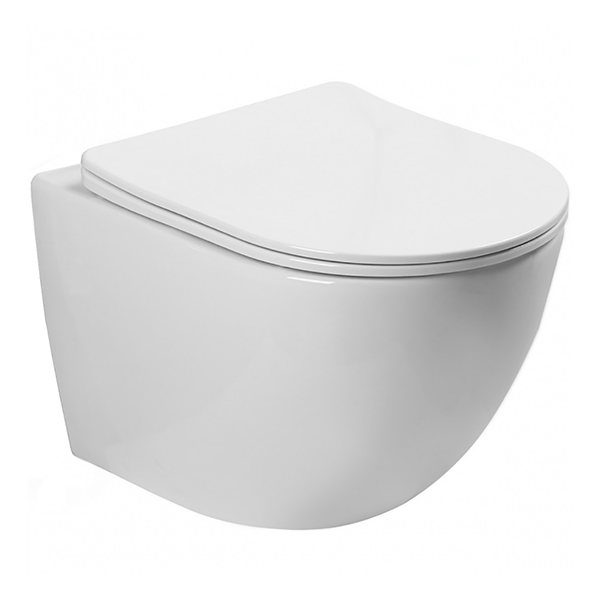 Унитаз подвесной безободковый ESWART 490х360х370 мм с ультратонкой быстросъёмной крышкой с механизмом плавного закрывания SoftClose цвет белый ESW-05-01