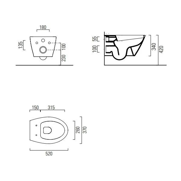 Унитаз подвесной безободковый с креплением GSI Modo SoftClose Swirlflush 520х370х340 мм: