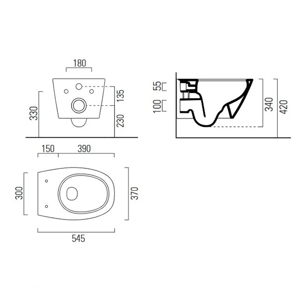 Унитаз подвесной безободковый с креплением GSI Modo SoftClose Swirlflush 540х370х340 мм 8415FR226