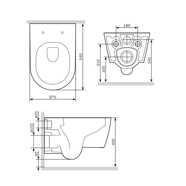 Унитаз компакт безободковый SANTILINE SoftClose 650х375х840 мм черный матовый SL-5017MBУнитаз подвесной безободковый DURAVIT D-Neo 540х370х360 мм 2577090000