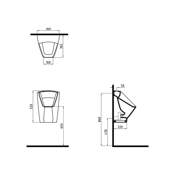 Писсуар BIEN Neptun 360х520х365 мм внешний подвод воды NPPS05201VSUW5000: