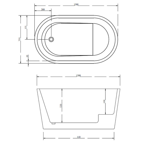 Ванна акриловая свободностоящая ABBER 130x75x63 мм AB9277