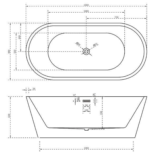 Ванна акриловая свободностоящая ABBER 150x80x60 мм AB9203-1.5