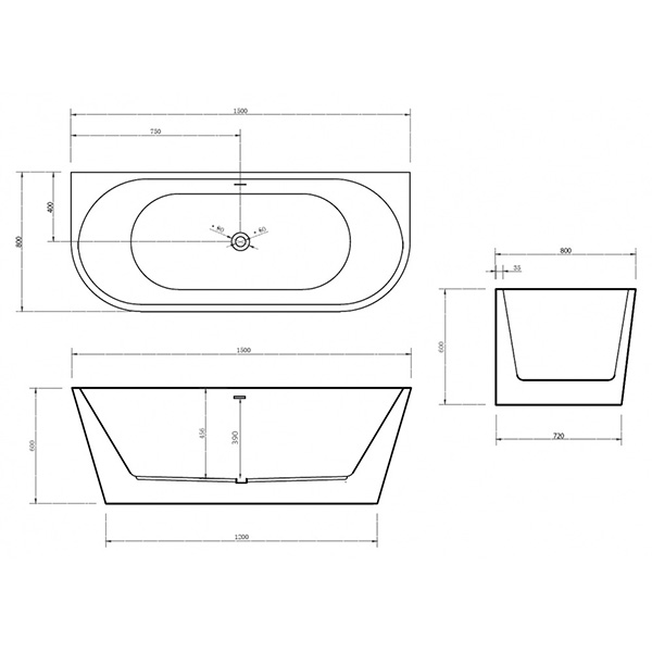 Акриловая ванна ABBER 150x80x60 мм AB9216-1.5