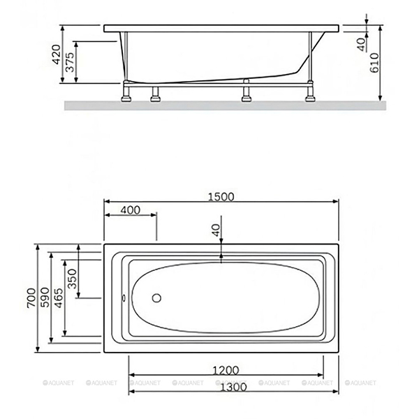 Ванна акриловая ALBA SPA Gamma 1500х700 мм белая: