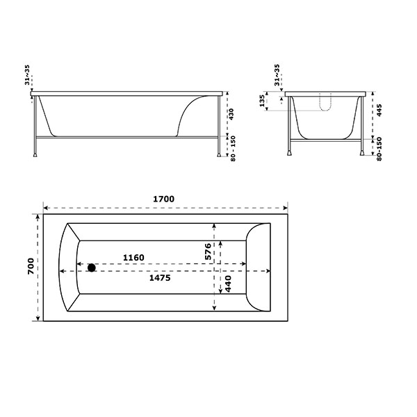 Ванна акриловая JACOB DELAFON Sofa 1700x700 мм E60518RU-00Ванна акриловая RADOMIR Ларедо 1600х700 мм