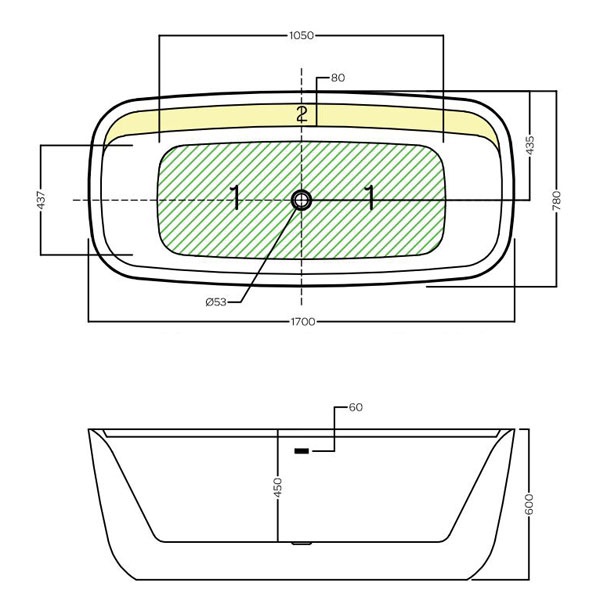 Ванна акриловая отдельностоящая HATRIA 170x78x60 см Y8AH25: