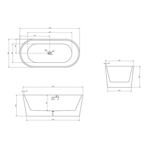 Ванна акриловая свободностоящая ABBER 1700х800х600 мм белый матовый AB9209MW