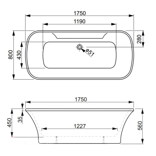 Ванна акриловая свободностоящая VAGNERPLAST Blanca WT 1750х800х450 мм
