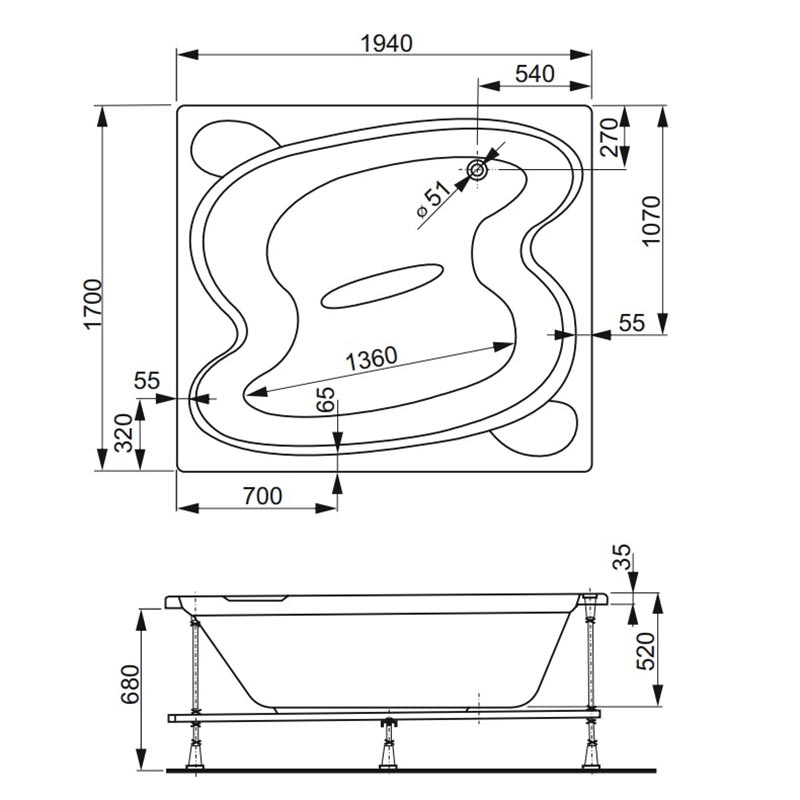 Ванна акриловая VAGNERPLAST Helios 1940х1700х520 мм: