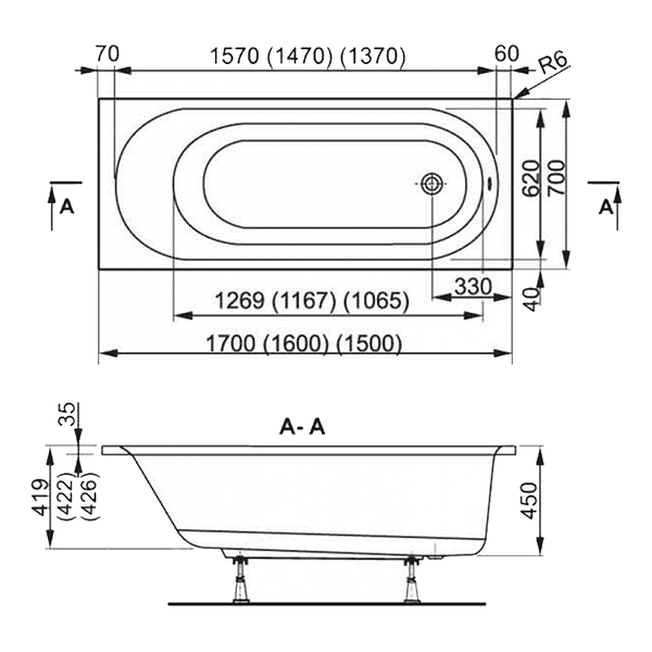 Ванна акриловая VAGNERPLAST Kasandra 1700x700х450 мм