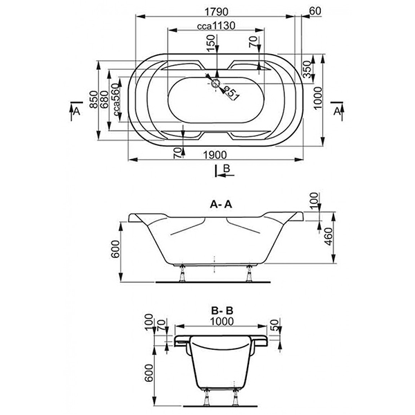 Ванна акриловая встраиваемая VAGNERPLAST Gaia 1900x1000x460 мм: